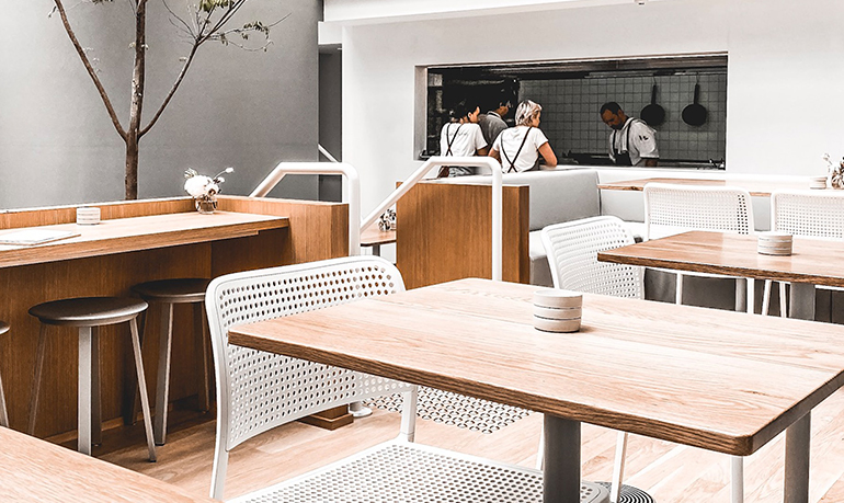 There’s plenty to delight and surprise. Super-sized bronze and glass kinetic hanging sculptures are designed to echo your flow as you drift and hover around the live food stations and enjoy.